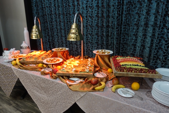 The food came out excellent too and fit the theme of healthy and intentional. I expressed to hotel event staff that I wanted food options to be fresh, with clean ingredients and balanced. I strongly believe in meals balanced with a lean protein source, complex carbs, healthy fats and micronutrients which are fruits and veggies. The chef took my ideas and created a spread that tasted good, was nutrient dense and looked decadent. For brunch we had a savory egg bake with veggies, sweet potatoes, lean protein sliders with fruit on the side. For our healthy snacks there was lean meatballs, hummus with pita bread and veggie, plus more fruit!